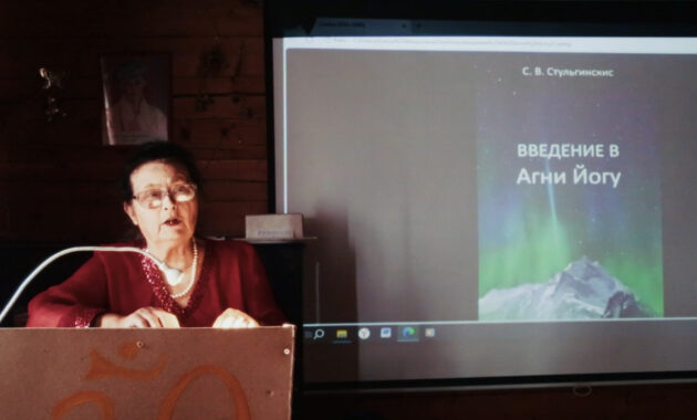 И, как продолжение развития мировоззренческих традиций, следующая лекция была посвящена сравнительно молодому Учению Агни Йоги, данному человечеству через семью Рерихов в 20 веке. Тема так и звучала «Введение в Агни Йогу. Структура Агни Йоги», её прочитала Е.И. Ильина, используя рекомендованную литературу, множество слайдов и Книги Учения.